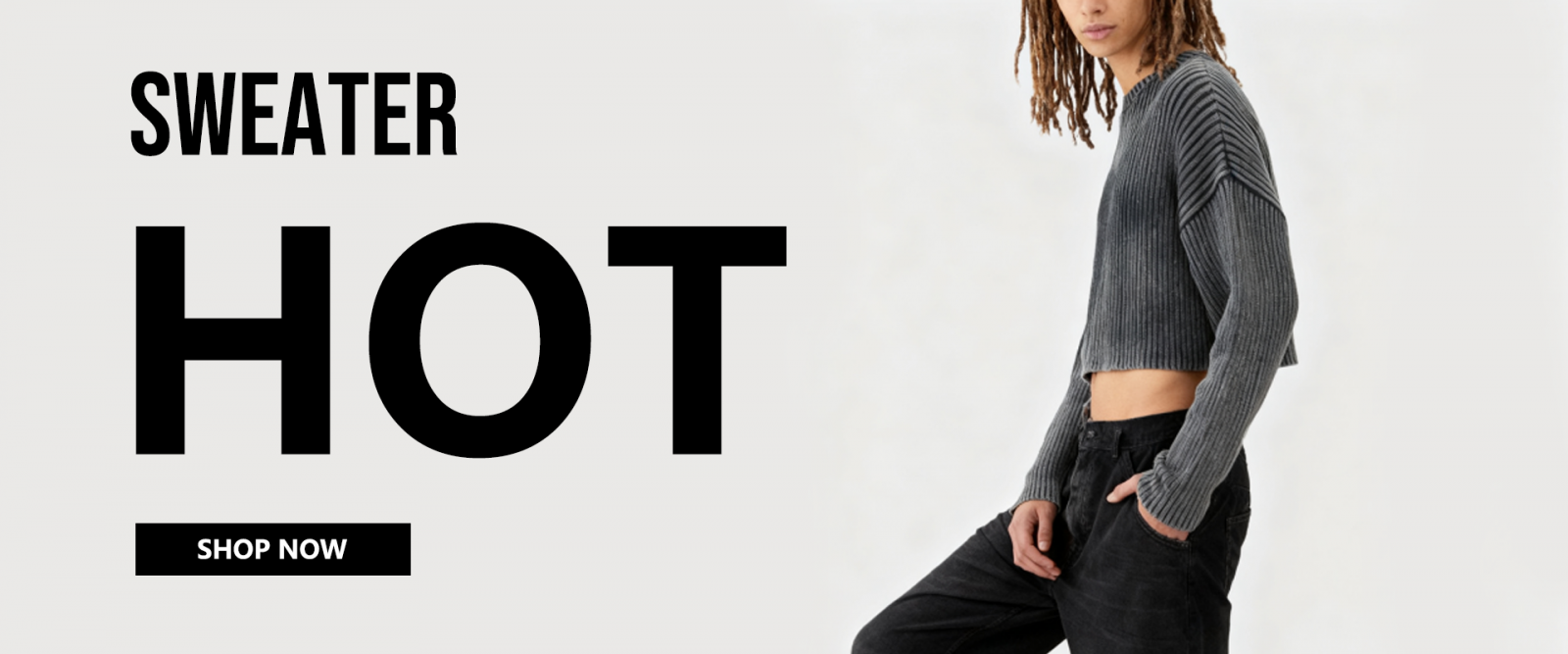 Gray Acid-Wash Ribbed Cropped Sweater